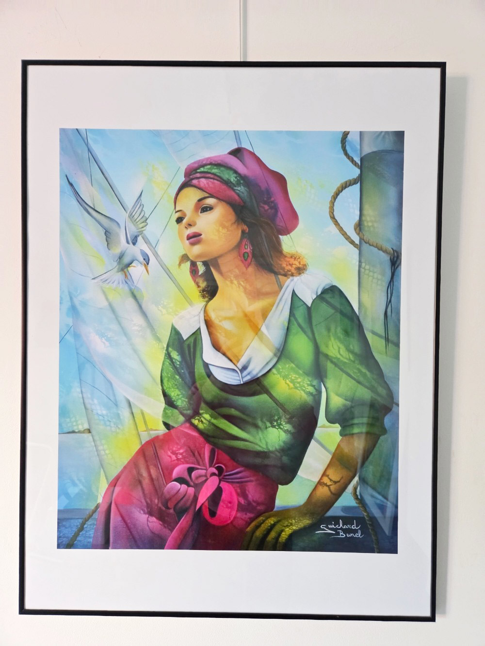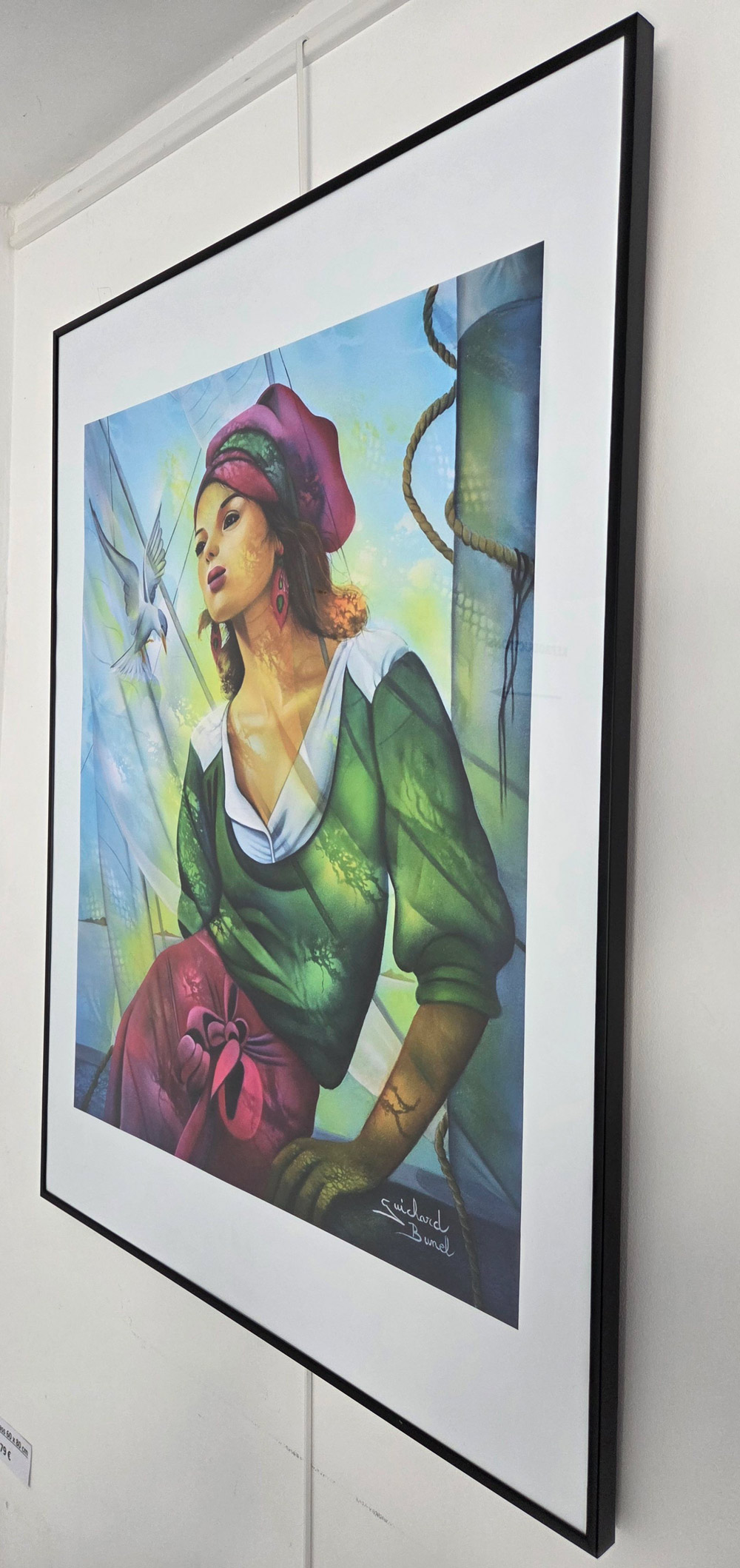 This signed art poster is a true favorite. It combines an expressive portrait, an intense color palette, and the dynamic theme of sailing. The play of light and the nuances of the fabric make this print particularly rich. A must-have for your wall decoration!